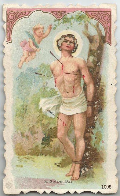No cabelo de são Sebastião deveria ter purpurina aplicada que, com o tempo, se desprendeu...
