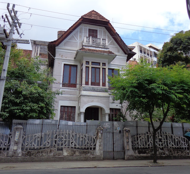 O casarão ficou anos fechado e os sinais do abandono começou a aparecer. Lembro que, antes de fechar, entrei lé e me deparei com uma sala de espera só com cadeiras de vinhático forradas de palhinha. Um luxo! Para o acesso à clínica havia ao lado uma linda escada de mármore branco e corrimão de ferro inglês.